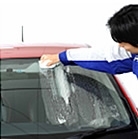 窓に付着したギラギラの油膜を、 特殊なケミカルでスッキリ除去します。